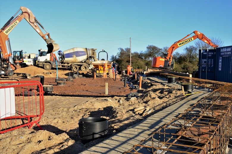 The majority of the underground drainage and service ducts have been installed, allowing capping layers of hardcore to be laid and compacted in preparation for the building concrete works to commence next week.