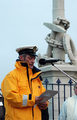 At 15:30, after a reading and bagpipe lament, two maroons were fired and both Wells lifeboats launched to a short service at sea near the spot where the Eliza Adams capsized. The service was relayed by radio to guests and public at the boathouse and members of the current crew cast a rose for each of the eleven crewmen lost. After a flypast by an RAF search and rescue Sea King helicopter, the boats ran up to Wells quay and crew and guests attended a service at the recently restored memorial to the disaster.